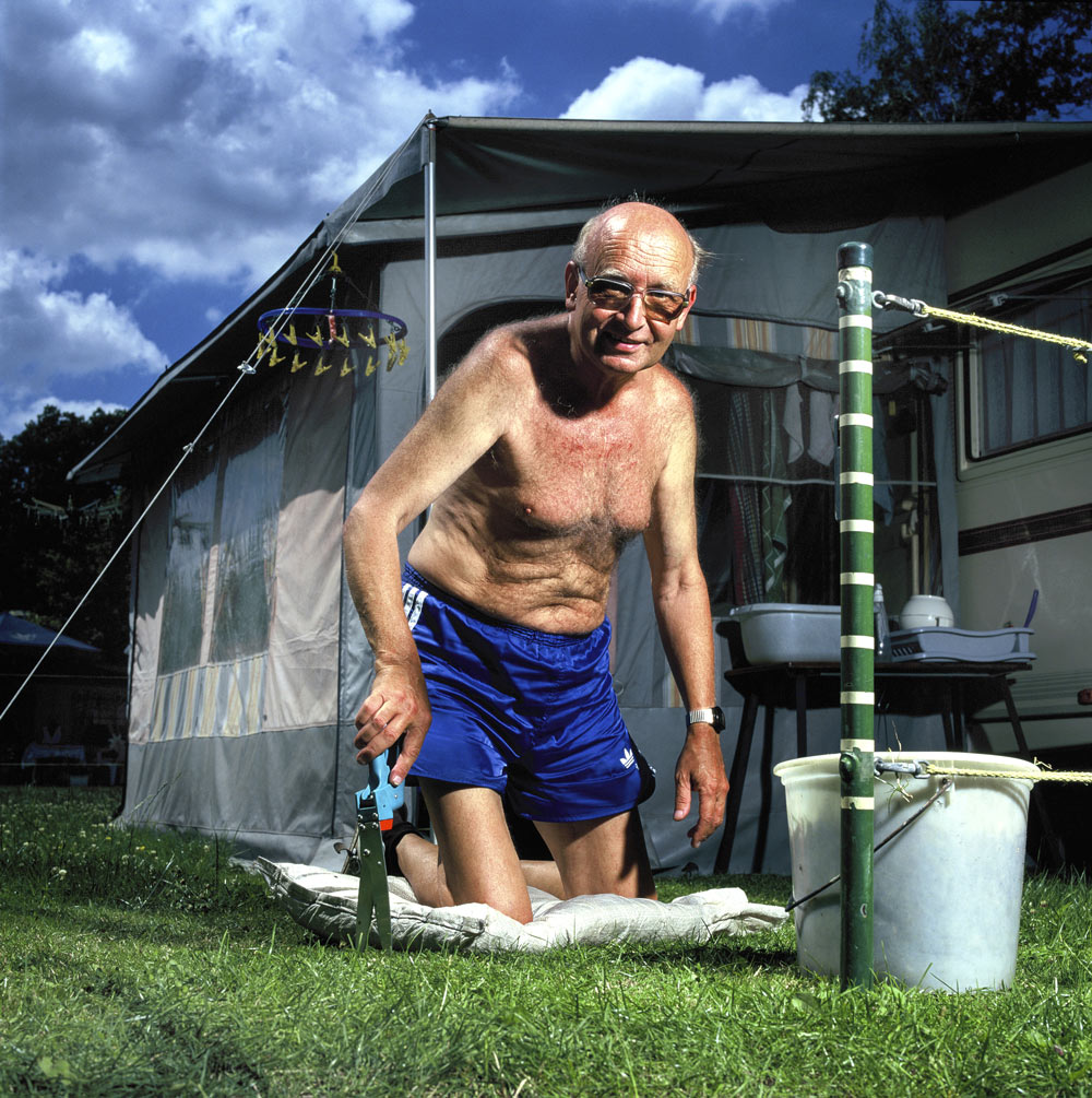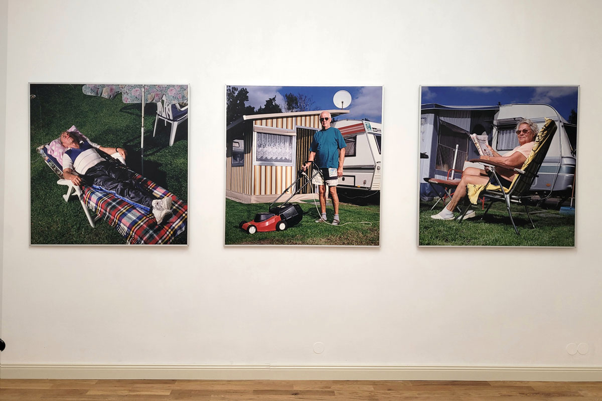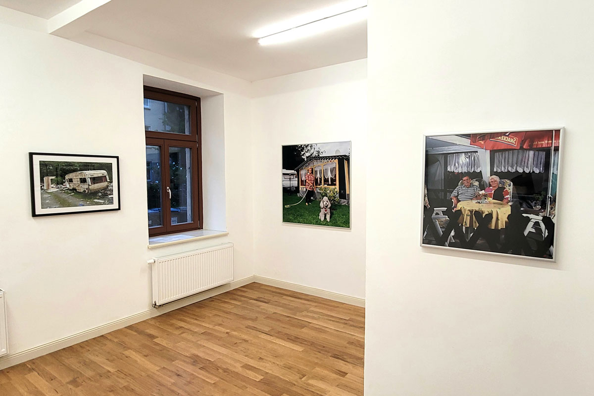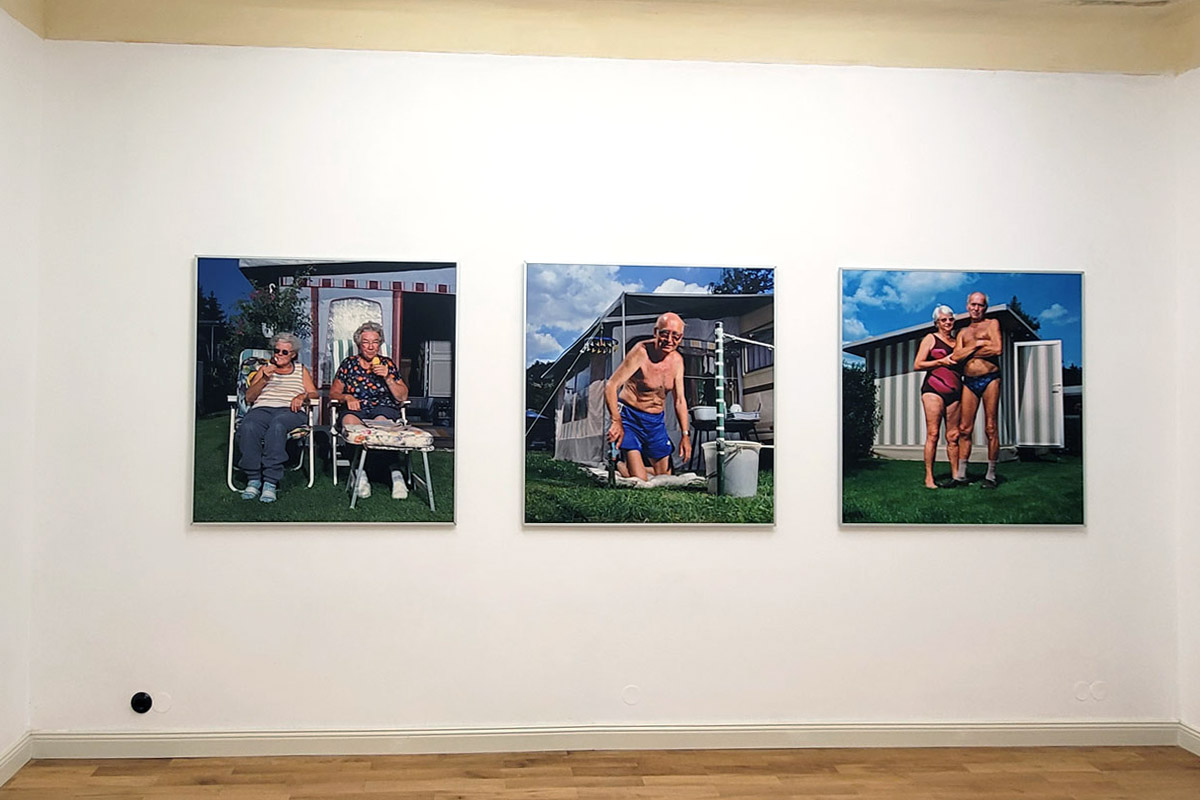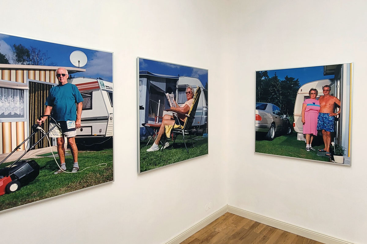 In der Ausstellung zeigt Reinhard Hennig großformatige Porträts von Dauercampern. Demgegenüber stehen Fotos von Thomas Fiebig und einem verwahrlosten Campingplatz, wo sich die Natur ihr Terrain zurück holt. So stellt sich der Eindruck von „Vorher und Nachher“ ein, auch wenn es sich nicht um die selben Orte handelt.