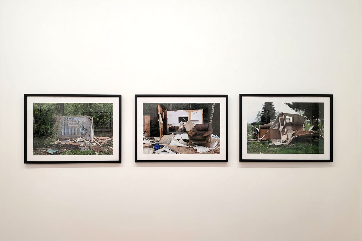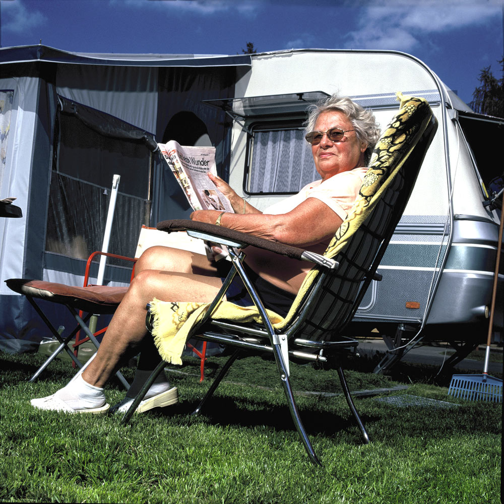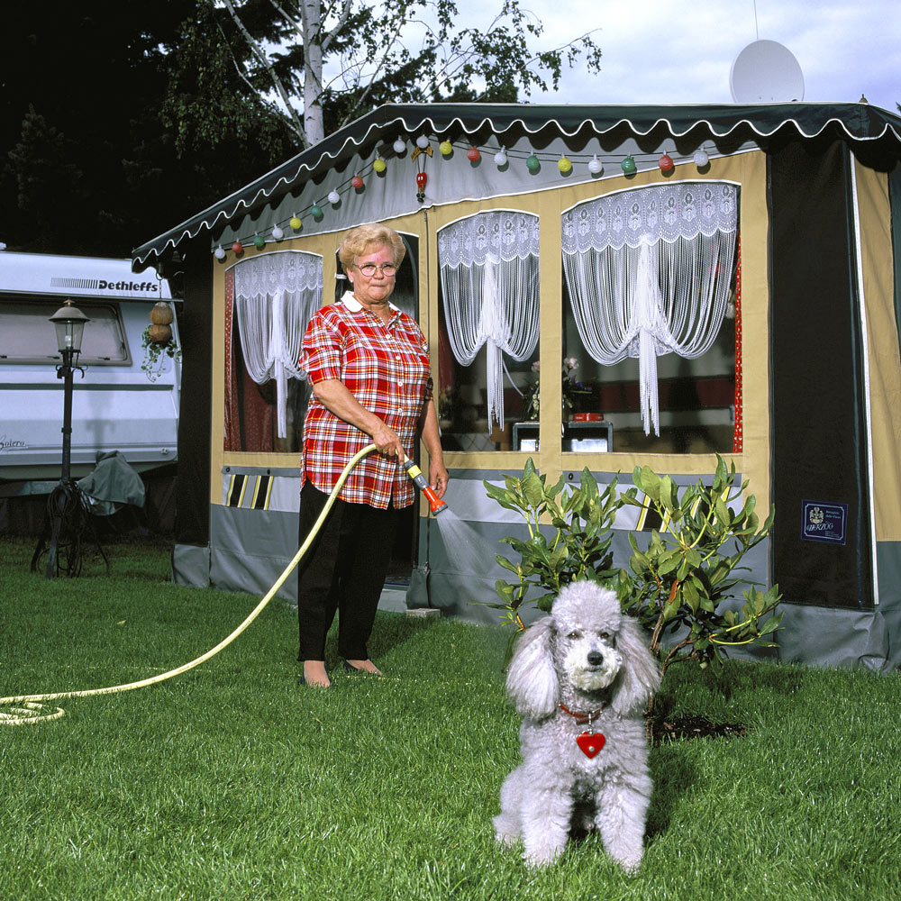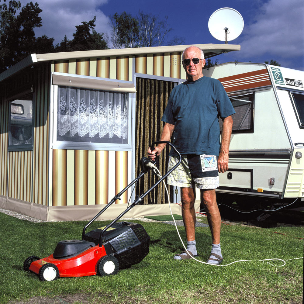 In der Ausstellung zeigt Reinhard Hennig großformatige Porträts von Dauercampern. Demgegenüber stehen Fotos von Thomas Fiebig und einem verwahrlosten Campingplatz, wo sich die Natur ihr Terrain zurück holt. So stellt sich der Eindruck von „Vorher und Nachher“ ein, auch wenn es sich nicht um die selben Orte handelt.