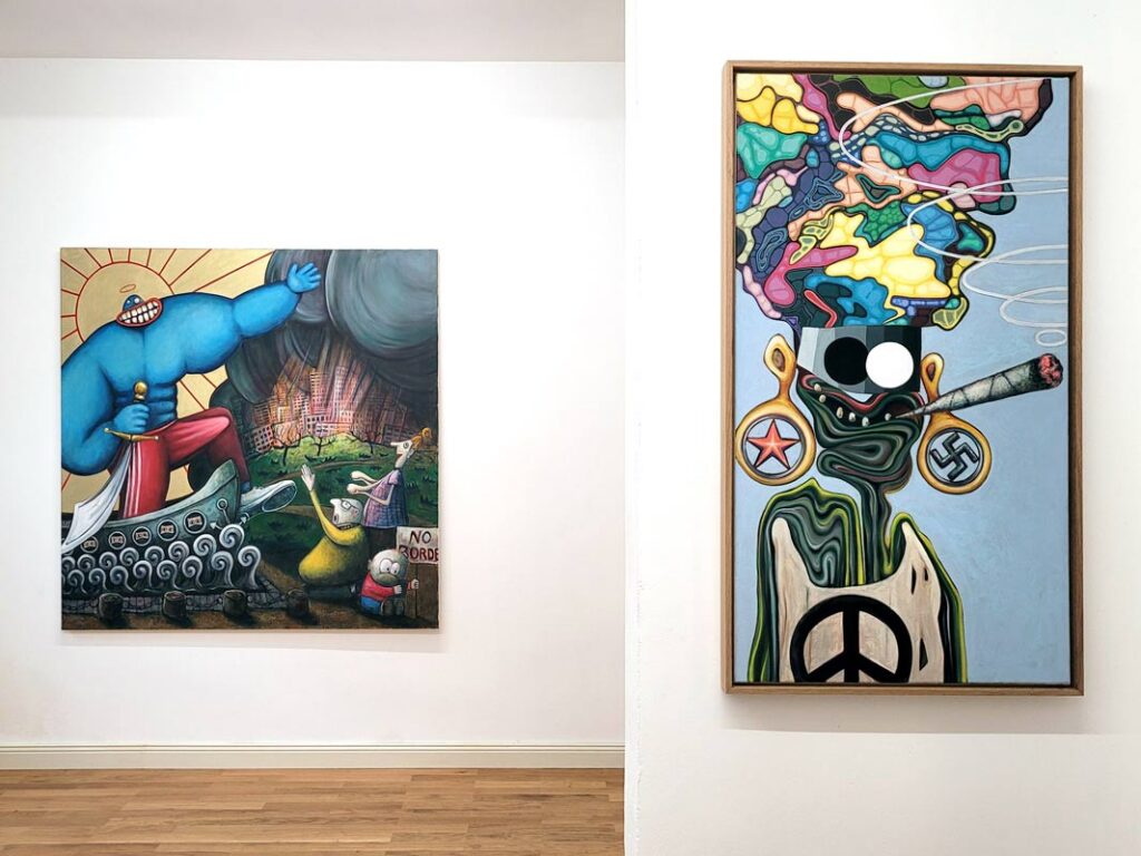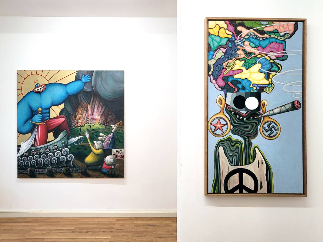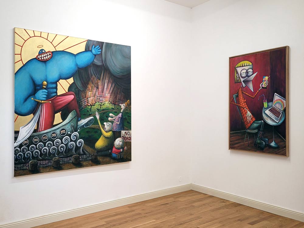 Das Überzeichnete in vielen meiner Werke ist für mich in diesem Sinne eine Form des Realismus. Karikatur und Groteske bilden ab und schaffen Abstand, das absurde Theater etwas Abseits auf der Loge zu genießen.