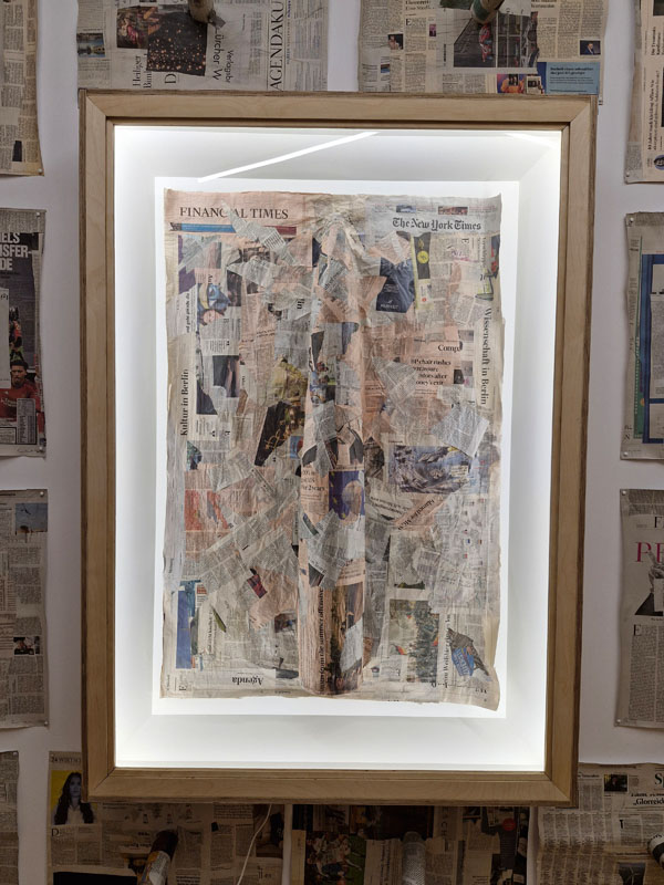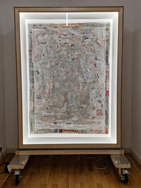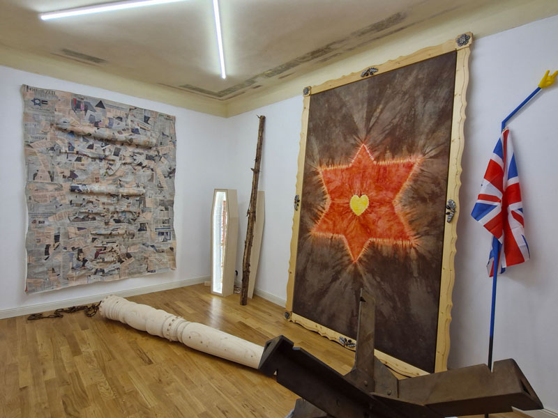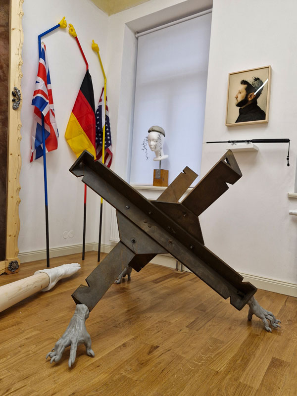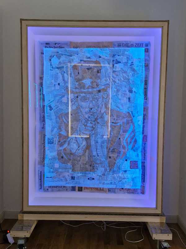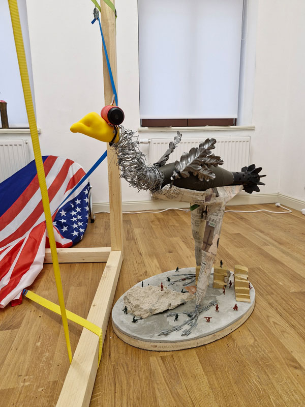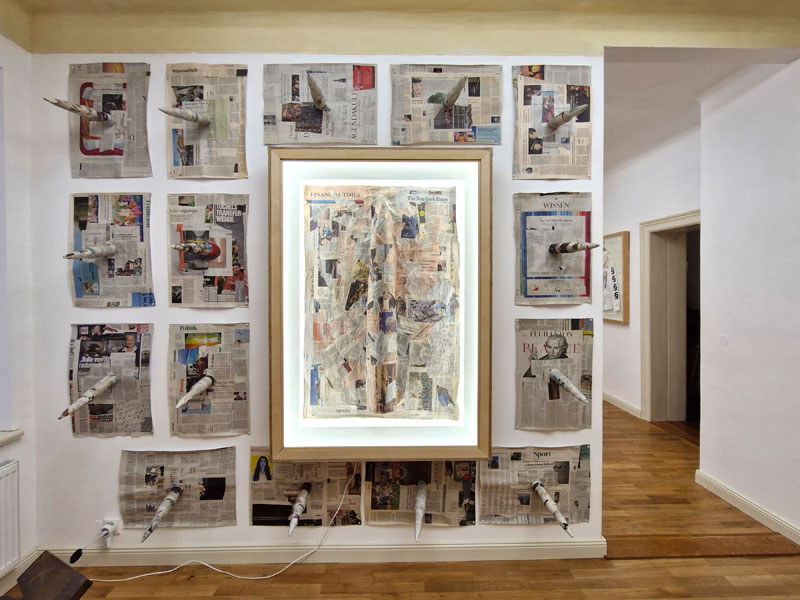 Es werden Arbeiten der letzten Jahre gezeigt, die sich mit den Verwerfungen der Coronazeit, der Kriegsthematik und aktuellen politischen Geschehnissen beschäftigen.